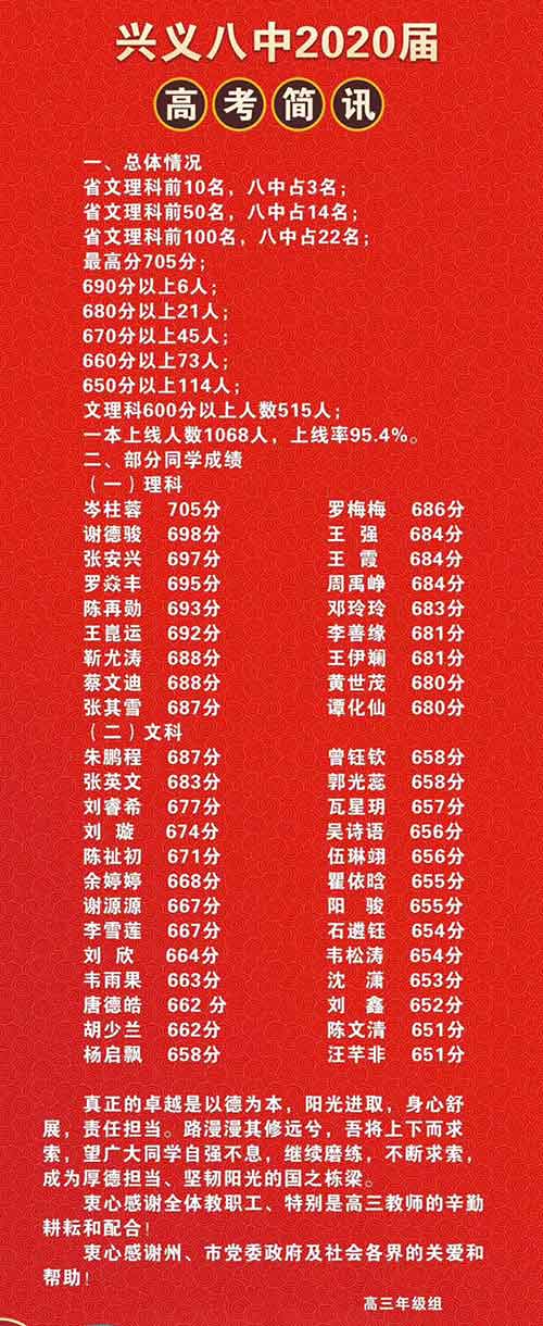 興義八中2020屆高考成績?nèi)绾危?/B>
