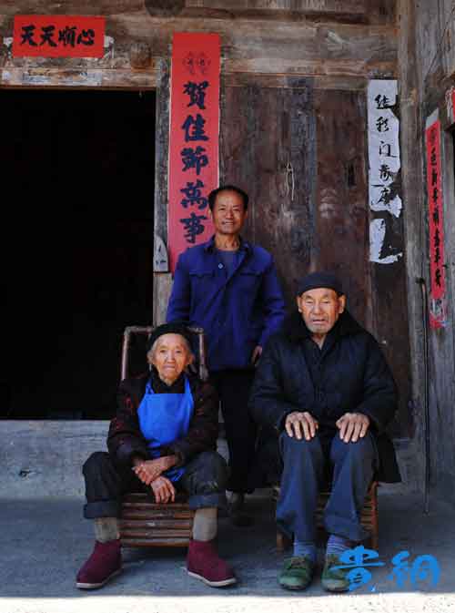 中國最長壽夫妻誕生在貴州:貴州省平塘縣通州鎮(zhèn)黨振村巖井組。 楊勝忠 1902年12月出生,楊金氏(本名金繼芬)1905年9月出生,貴州省平塘縣通州鎮(zhèn)黨振村巖井組人。 再過一個月,這對中國最長壽夫妻的年齡加起來就是215周歲了。 昨天,從貴陽驅(qū)車3小時,穿過層層疊疊的大山,我們來到了他們的家里——一間沒有閣樓,看起來已經(jīng)有些年頭的瓦蓋木房子。 這里平均海拔約1000米,空氣顯得格外清新。 106歲還能喂豬摘菜 見到106歲的金繼芬老人時,她剛?cè)ヌ碡i食回來。 “剛才我在喂豬,手還有點臟。”老人個字1米5左右,拄著拐杖從廚房方向走向大廳,笑呵呵地跟我們打招呼。 起床、燒開水、和玉米面和糠,提著超過10斤的豬食去喂豬。 豬圈門約1米高,由4塊差不多大小的木板圍起來,每塊木板有3斤多重。 先卸下兩塊,再跨過剩下的半米高柵欄,拄著拐杖,走下4級階梯,把豬食倒進食槽里。 早中晚,一天喂3次。這是金繼芬老人每天都要干的活。天氣好的時候,她還會到菜地里摘菜。 金奶奶的丈夫,109歲的楊勝忠有1米73的個頭,聽力已經(jīng)不大好,這兩天還有些感冒。昨天看到我們來,他只是樂呵呵地笑著,坐在門口逗小貓玩。 “他愛睡覺,早上起來曬曬太陽,吃過中午飯就再歇一會,沒事就逗家里的4只小貓。”金奶奶很健談。(來源:貴網(wǎng)11月11日訊(黔中早報記者 李蔓倩 圖/張雷)) 相關(guān)附件: ![]() |